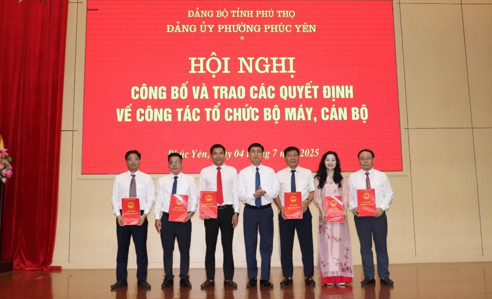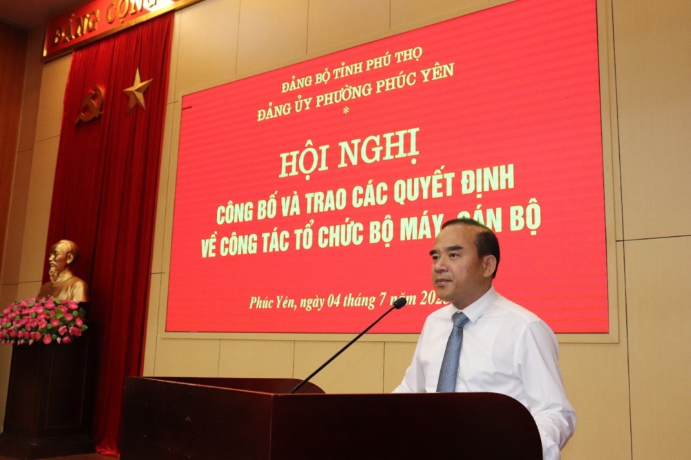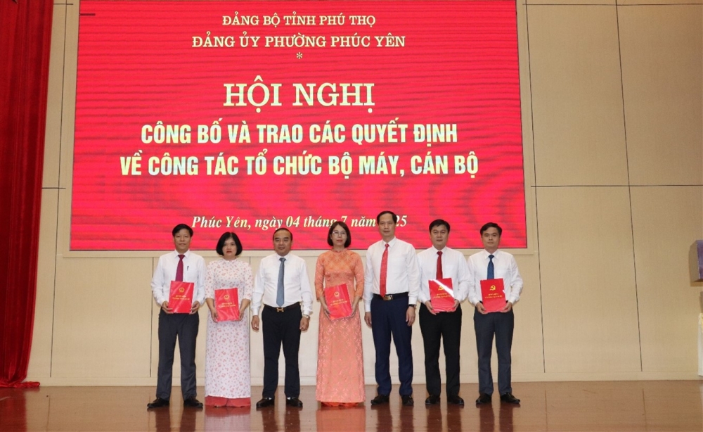 Tại hội nghị, đại diện Đảng ủy và UBND phường Phúc Yên đã công bố các quyết định liên quan đến công tác tổ chức và nhân sự, quyết định thành lập các phòng chuyên môn, Trung tâm sự nghiệp công lập thuộc UBND phường, cùng các quyết định phân công, bổ nhiệm cán bộ lãnh đạo, quản lý tại các cơ quan, đơn vị.