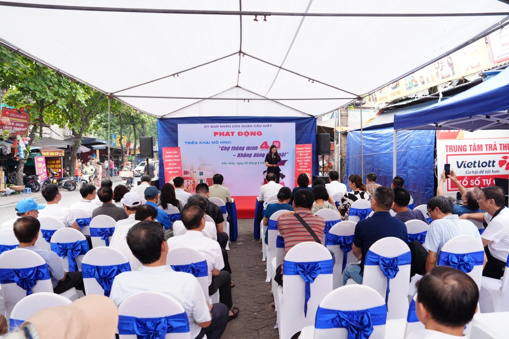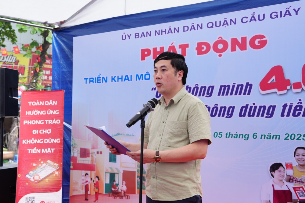 | Ông Ngô Ngọc Phương, Phó Chủ tịch UBND quận Cầu Giấy phát động chợ thông minh không dùng tiền mặt |