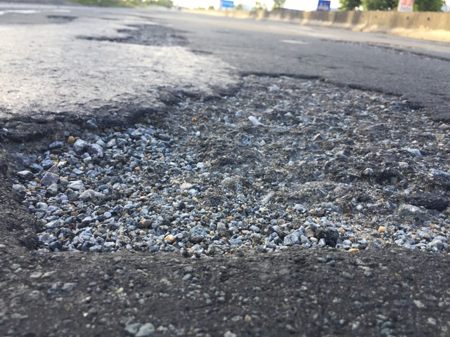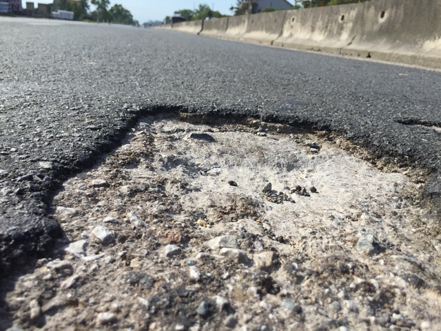 “Các đoạn đường chủ yếu bị sụt lún, bong tróc lớp phủ vữa nhựa Polime (micro surfacing). Nguyên nhân chủ yếu do mưa lớn kéo dài. Do công nghệ thảm trước đó quá mỏng nên mưa sẽ bị lở loét, bong ra song vẫn đảm bảo mặt đường!?”, ông Thanh lý giải.
