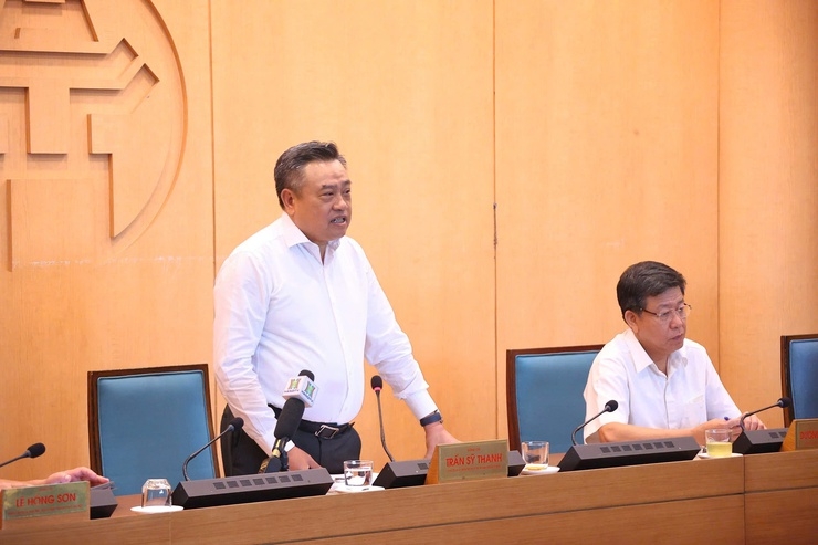 | Chủ tịch UBND thành phố Hà Nội Trần Sỹ Thanh phát biểu kết luận cuộc họp. Ảnh: HNP. |