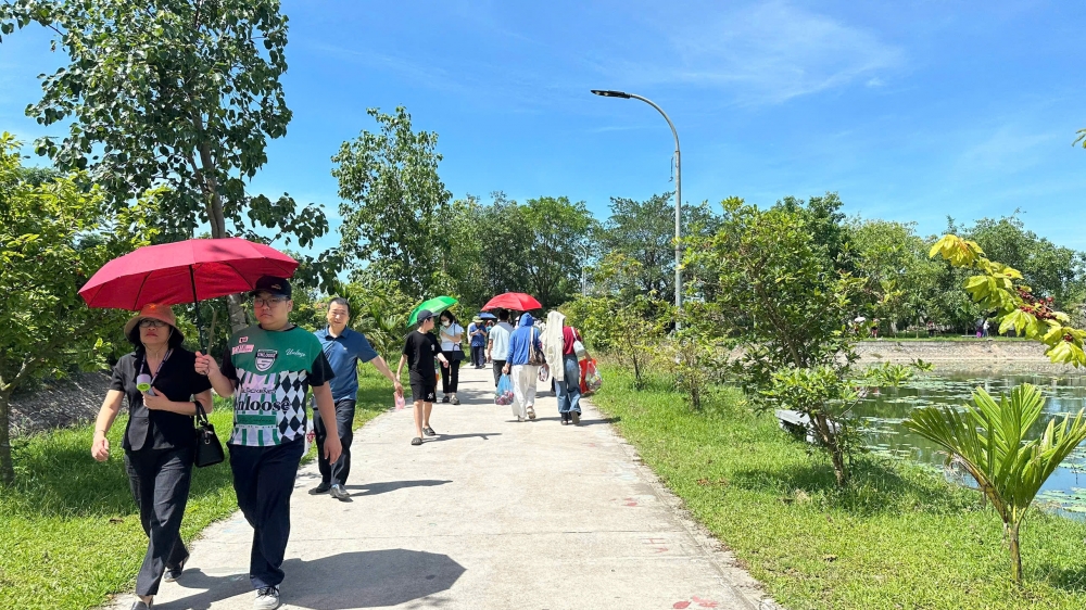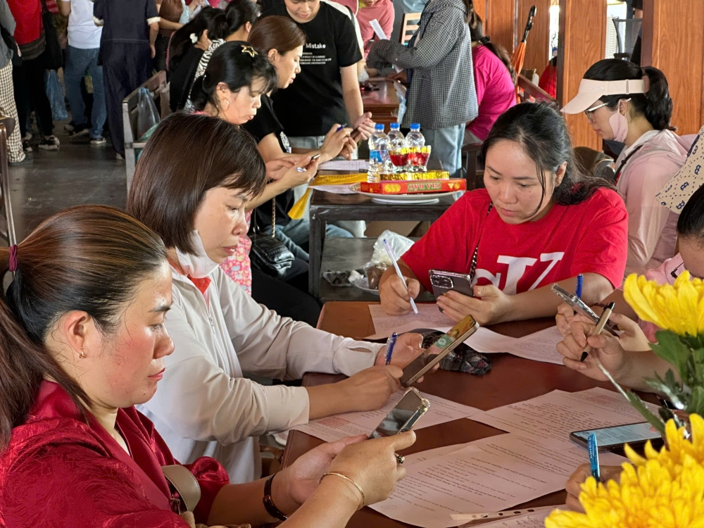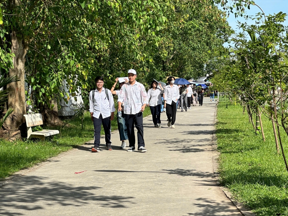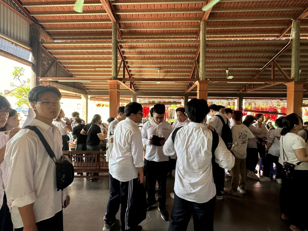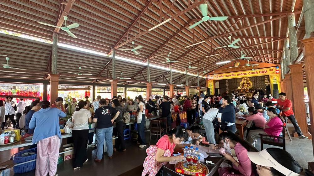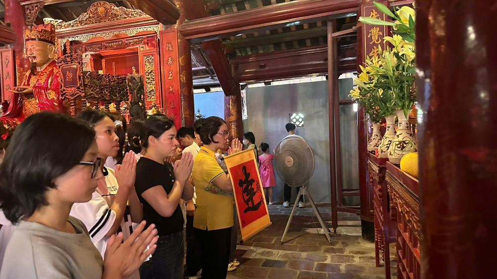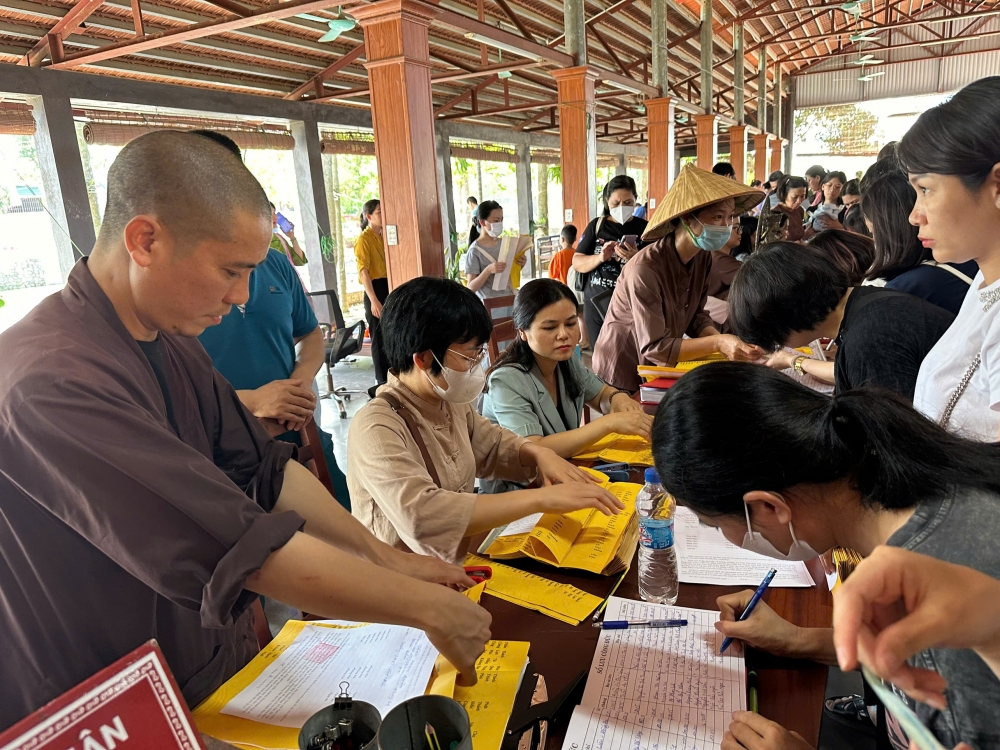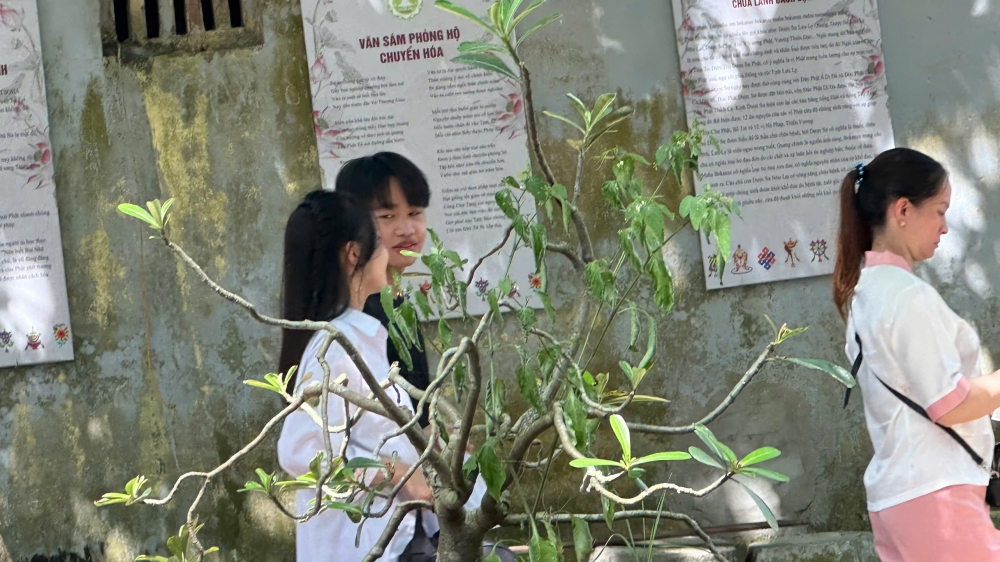 Lượng khách đến chùa càng về trưa càng đông, chủ yếu là các gia đình cùng thí sinh chuẩn bị thi vào lớp 10 và thi tốt nghiệp THPT sắp tới đến đây, cầu mong vượt qua kỳ thi tốt nghiệp, cũng như đạt được nguyện vọng trường đại học mong muốn.