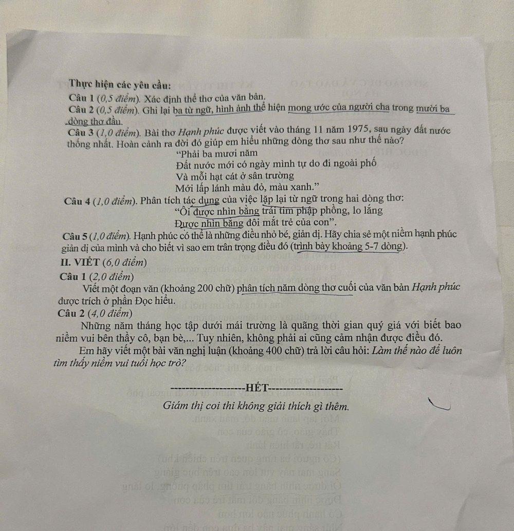 Đề thi có câu nghị luận “Làm thế nào tìm thấy niềm vui của tuổi học trò”, nhiều thí sinh cảm thấy không quá khó.