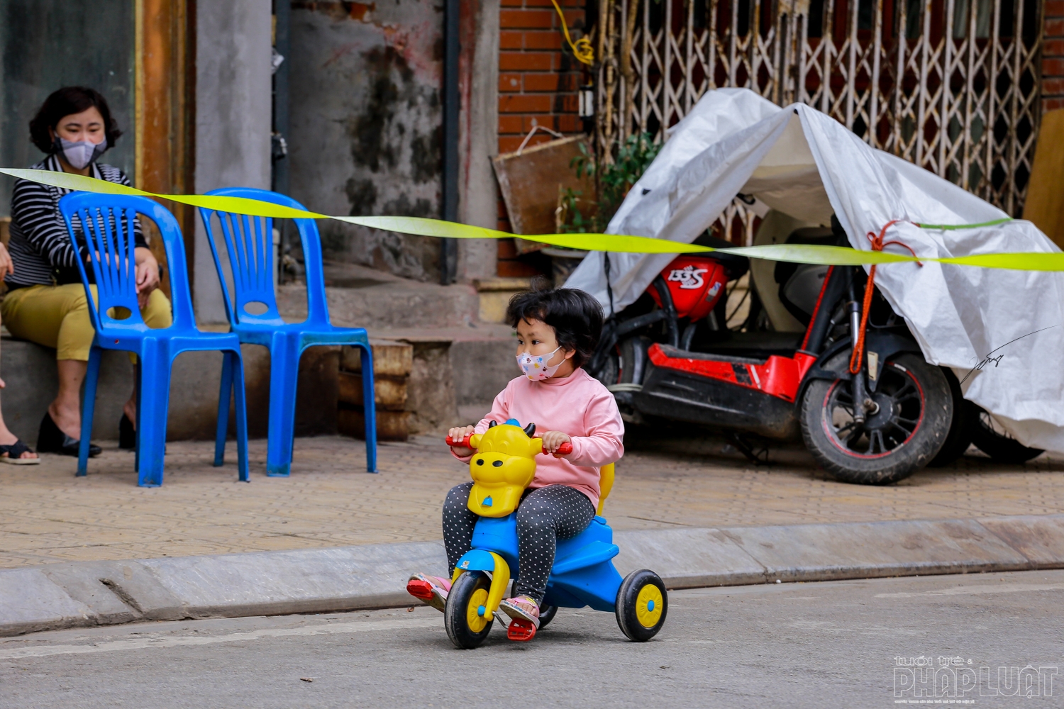 | Trẻ em trong khu cách ly ra phố Trúc Bạch vô tư chơi đùa. |