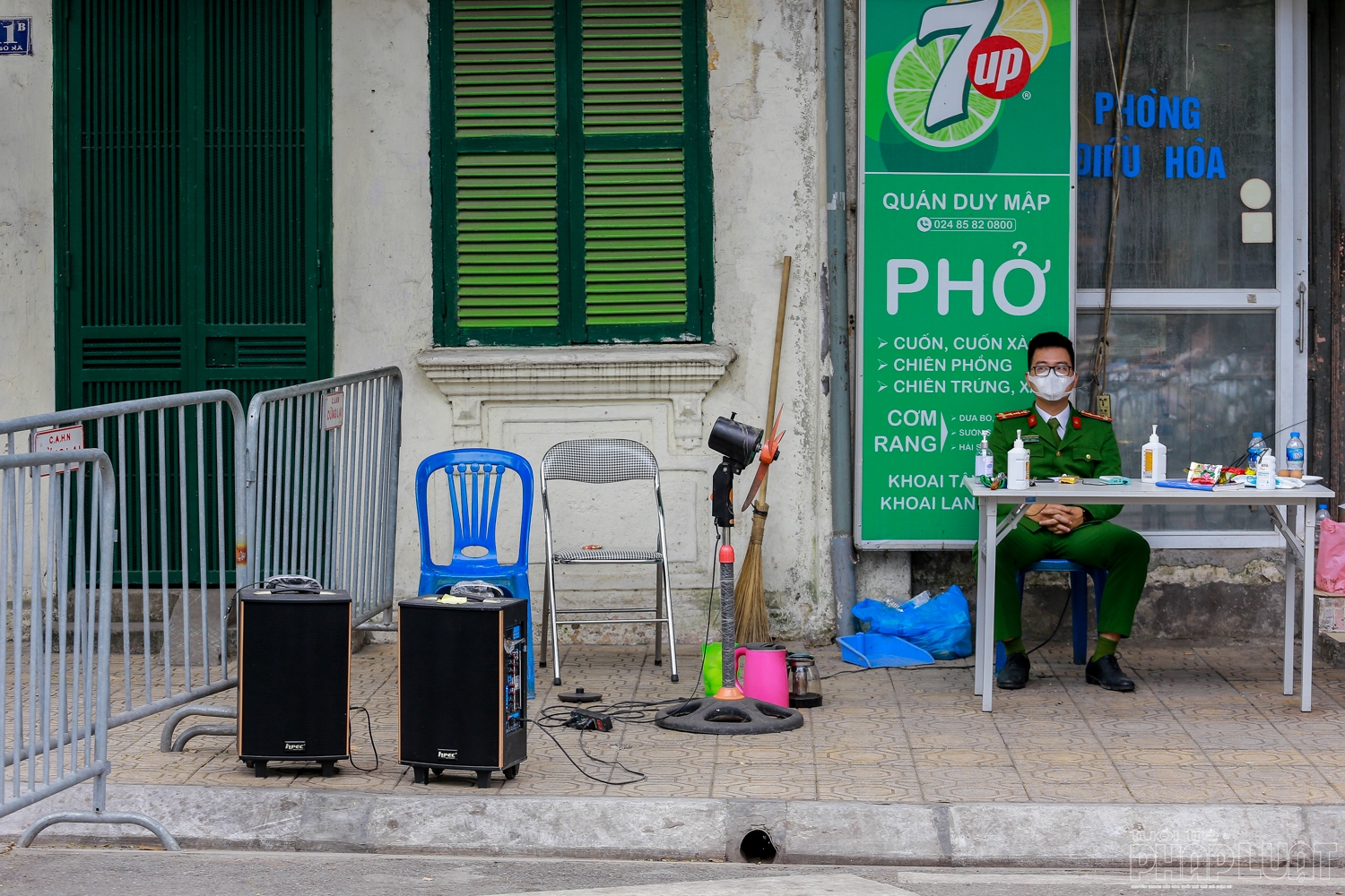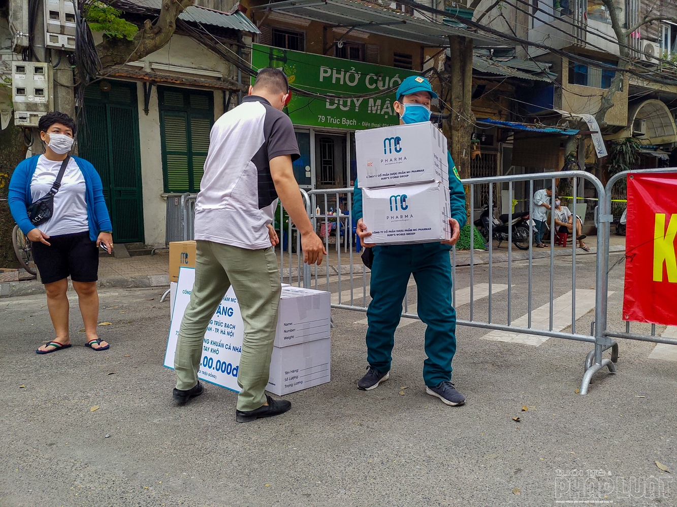 | Kể từ khi khu phố bị phong tỏa, lực lượng chức năng của nhiều đơn vị như y tế, công an, dân phòng... luôn túc trực tại đây 24/24. Trên bàn làm việc tại đầu các chốt kiểm dịch Trúc Bạch - Ngũ Xã, Trúc Bạch - Châu Long không thể thiếu khẩu trang, nước rửa tay sát khuẩn. |