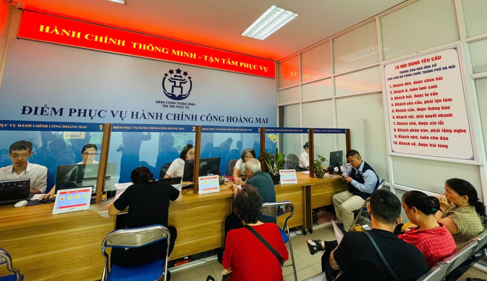 Còn tại Điểm phục vụ hành chính công phường Hoàng Mai, mọi công tác chuẩn bị đều được sẵn sàng ngay từ giai đoạn chạy thử nghiệm mô hình chính quyền hai cấp. Đáng chú ý, phường đề cao sự tiên phong về công nghệ của giới trẻ, sự sôi nổi, nhiệt huyết của đội ngũ này để áp dụng vào việc tiếp đón và phục vụ người dân khi đến Điểm phục vụ hành chính công của phường.