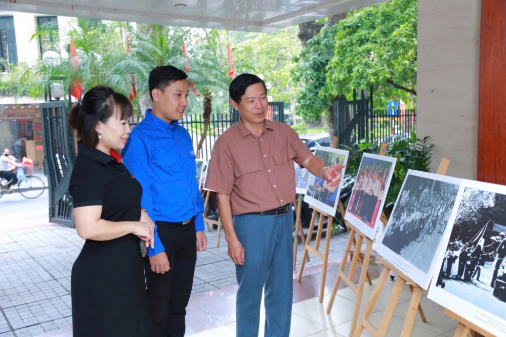 | Nguyên Phó Trưởng ban Thường trực Ban Tuyên giáo Thành ủy Hà Nội Phạm Thanh Học tham quan triển lãm ảnh. |