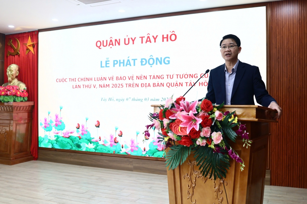 | Đồng chí Trần Quang Đạo, Trưởng ban Tuyên giáo và Dân vận quận Tây Hồ phát động cuộc thi |
