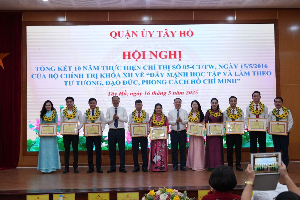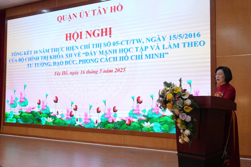 Lãnh đạo quận Tây Hồ cho biết, ngay từ khi Chỉ thị số 05 được ban hành, Quận ủy Tây Hồ đã xác định đây là nhiệm vụ chính trị trọng tâm, xuyên suốt. Trong 10 năm qua, Ban Thường vụ Quận ủy đã ban hành 30 văn bản chỉ đạo, hướng dẫn thực hiện; tổ chức 145 hội nghị học tập chuyên đề, thu hút trên 72.000 lượt người tham dự; phát hành 23.000 cuốn Sổ tay học tập và làm theo Bác để cán bộ, đảng viên sử dụng làm tài liệu sinh hoạt và kiểm đếm kết quả tự rèn luyện hàng năm.