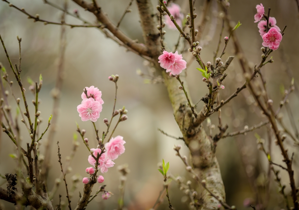 | Thời tiết nắng ấm nên nhiều cây đào đã nở sớm. Theo tiểu thương, việc chăm sóc đào, quất cho ngày Tết là cả một quá trình đòi hỏi sự tỉ mỉ và kinh nghiệm. Thời tiết mỗi năm một khác, nên việc theo dõi và điều tiết nước tưới là vô cùng quan trọng. |