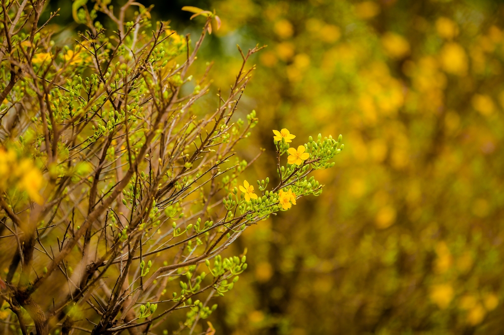| Những cây mai bung sắc vàng rực rở chờ "đại gia" rinh về chơi Tết. |