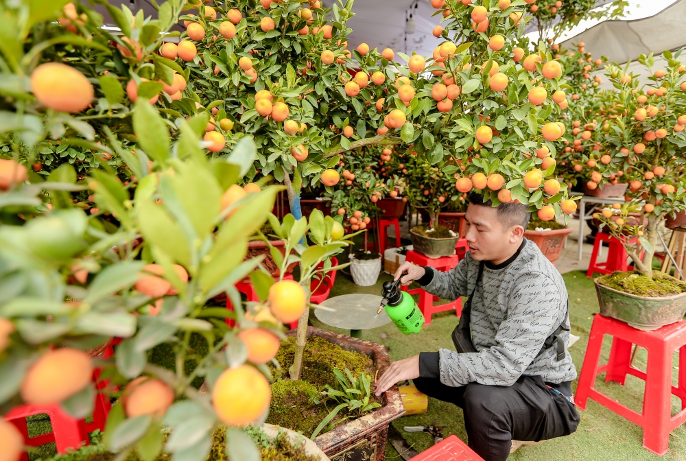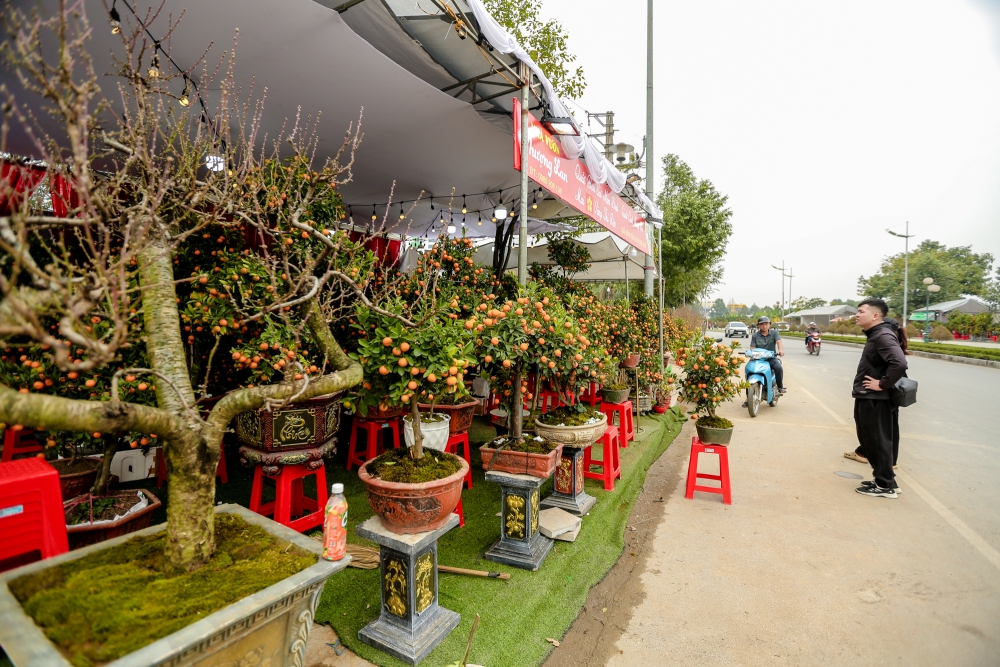 | Annh Đỗ Viêt Phượng (chủ vườn Phượng Lan) cho biết, anh đưa rất nhiều dòng quất bonsai về phục vụ khách chơi Tết. Trong đó có, dòng quất Nam Định, Hưng Yên... Anh Phượng đánh giá thị trường năm nay sẽ chuộng quất bonsai hơn vì rất hợp với chưng ở chung cư, nhà nhỏ. "Giá khoảng từ 300 nghìn đến 3 triệu đồng. Thời điểm này khách mua rất nhiều, dự kiến sẽ đông hơn trong những ngày sắp tới.", anh Phượng chia sẻ. |
