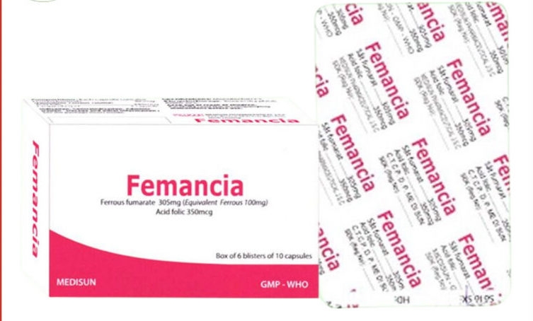 Cụ thể, thuốc Femancia; số đăng ký: VD-27929-17; dạng bào chế: viên nang cứng; Hoạt chất, nồng độ/hàm lượng: Sắt nguyên tố (dưới dạng Sắt fumarat 305 mg) 100 mg; Acid Folic 350mcg, do Công ty Cổ phần Dược phẩm Me Di Sun, địa chỉ: 521 Khu phố An Lợi, Phường Hòa Lợi, TP Hồ Chí Minh (địa chỉ cũ: 521 Khu phố An Lợi, phường Hòa Lợi, thị xã Bến Cát, tỉnh Bình Dương cũ) sản xuất bị thu hồi ở tất cả cơ sở kinh doanh dược, cơ sở khám bệnh, chữa bệnh và người sử dụng do vi phạm ở mức độ 2, gây nguy cơ ảnh hưởng tới hiệu quả điều trị và an toàn cho người sử dụng.