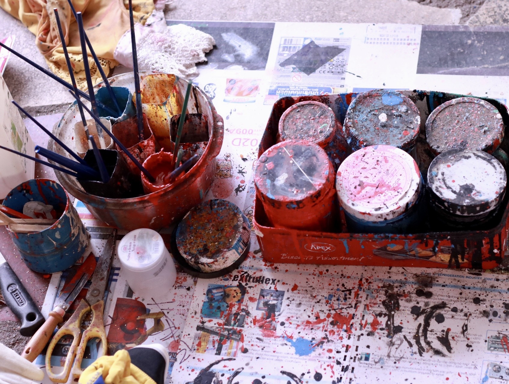 | Những hộp sáp màu tạo nên "linh hồn" cho chiếc mặt nạ |