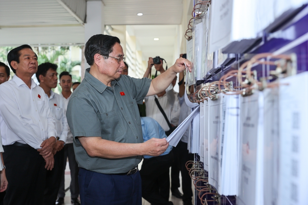 | Thủ tướng Phạm Minh Chính kiểm tra tại Trung tâm Phục vụ hành chính công phường Ninh Kiều, TP Cần Thơ. Ảnh: VGP. |