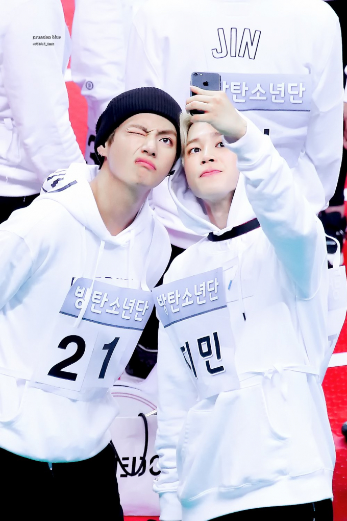 BTS là nhóm nhạc nổi tiếng thân thiết trong giới thần tượng Hàn Quốc. Cùng nhau bắt đầu từ con số không đến khi trở thành nhóm nhạc nổi tiếng đạt những giải thưởng danh giá cả trong nước lẫn quốc tế, các thành viên thân thiết đến mức coi nhau là anh em một nhà, hoàn toàn không có khoảng cách. Trong nhóm, cặp đôi tình cảm ra mặt phải kể đến V và Jimin. Cả hai thường xuyên “bám lấy nhau” trong các chương trình, thậm chí còn không ngại thể hiện những hành động thân mật như nắm tay, khoác vai hay thậm chí là ôm, thơm má.