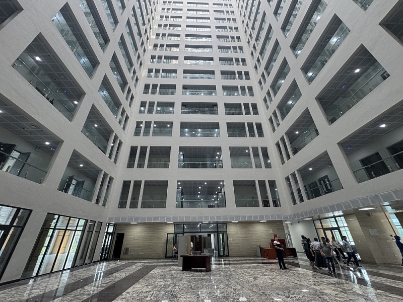 | Tòa nhà liên cơ quan mới gồm 22 tầng nổi và 2 tầng hầm, tổng diện tích sàn khoảng hơn 40,5 nghìn m2 theo kiến trúc hiện đại, thuận tiện. |