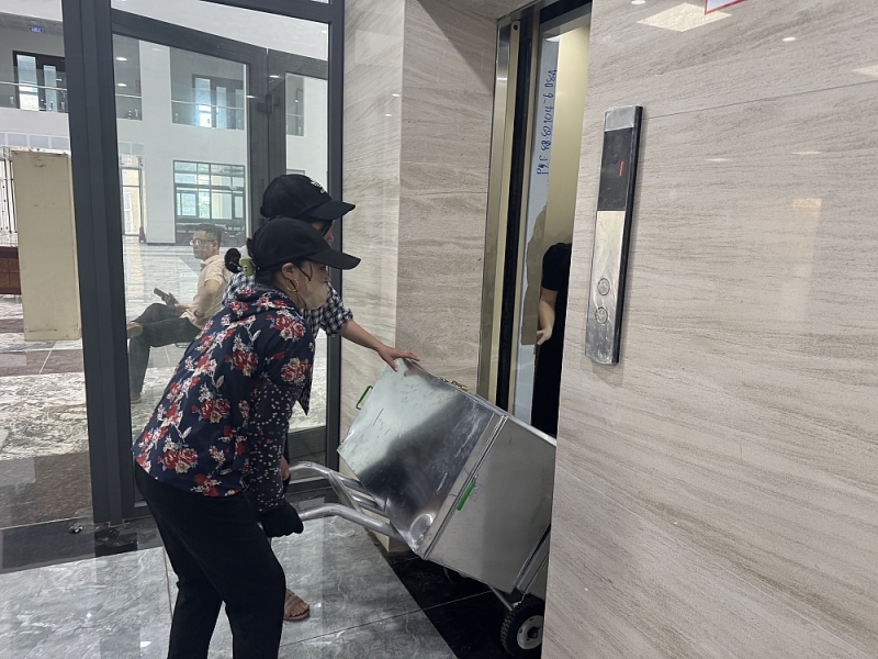 Theo ghi nhận của PV Báo Tuổi trẻ Thủ đô ngày 24/6, các đơn vị đang thực hiện chuyển các đồ dùng, tài liệu phục vụ cho công việc vào toà nhà để phục vụ cho công việc.