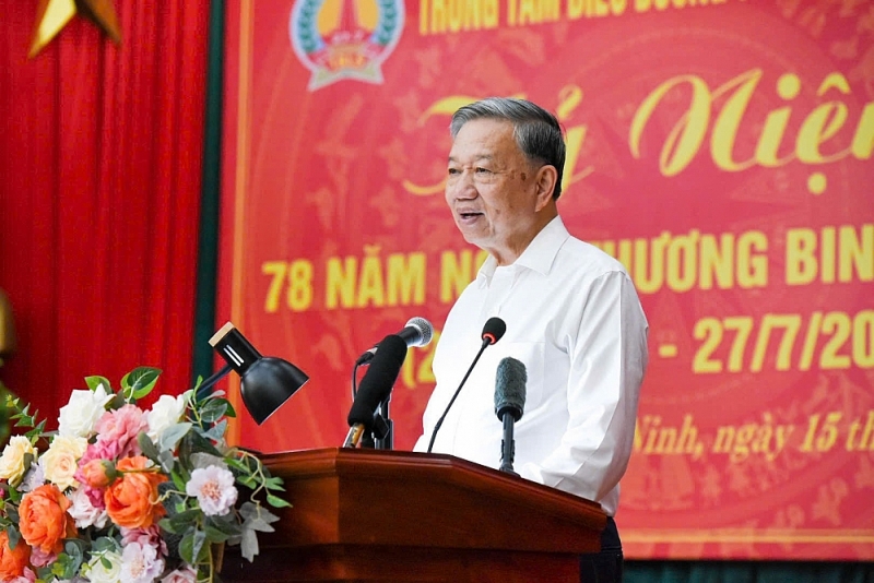 Nhân kỷ niệm 78 năm ngày Thương binh - Liệt sỹ (27/7/1947-27/7/2025), chiều 15/7, tại Bắc Ninh, Tổng Bí thư Tô Lâm dẫn đầu đoàn công tác Trung ương về thăm và tặng quà các thương bệnh binh, người có công, gia đình chính sách tại Trung tâm điều dưỡng thương binh Thuận Thành, tỉnh Bắc Ninh.