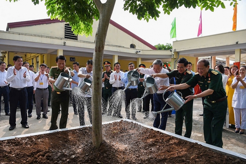 | Tổng Bí thư Tô Lâm trồng cây lưu niệm tại Trung tâm điều dưỡng thương binh Thuận Thành, Bắc Ninh. |