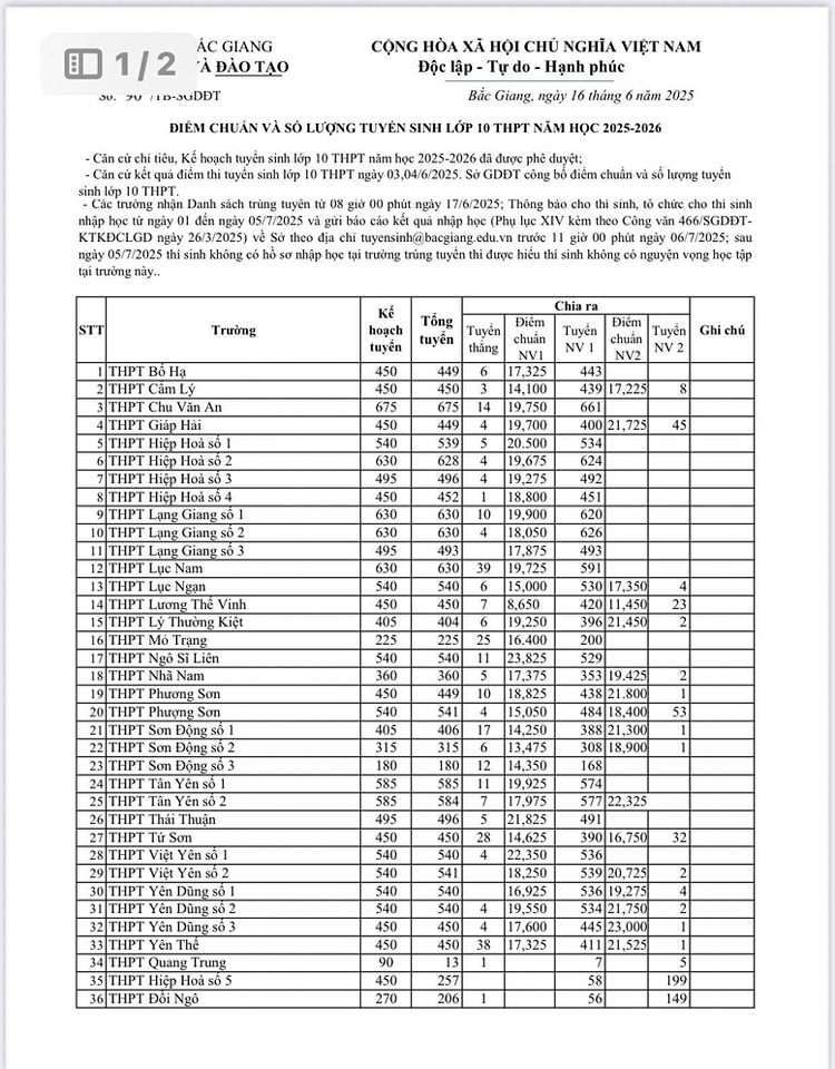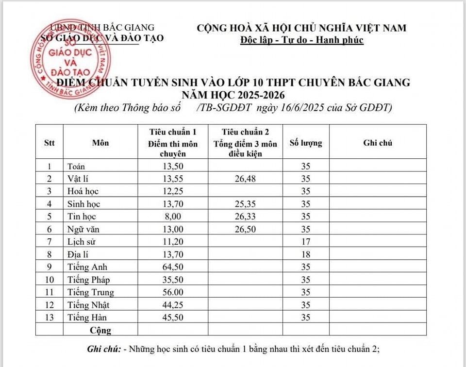 Tra cứu điểm thi và điểm chuẩn vào lớp 10 tại Bắc Giang
