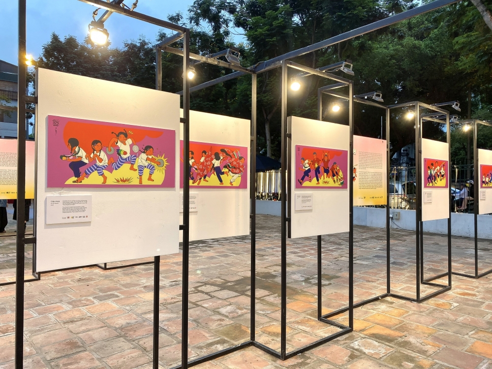 “Lớn kể chuyện bé” được trưng bày tại Hồ Văn (Văn Miếu - Quốc Tử Giám) đến hết ngày 31/7, hứa hẹn mang đến cho người xem nhiều trải nghiệm đong đầy hoài niệm.