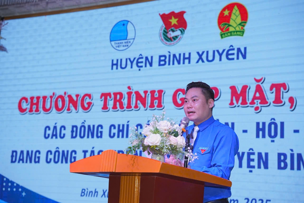 Từ lịch sử và truyền thống vẻ vang cùng với những thành tích tốt đẹp đó, thay mặt Ban Thường vụ Huyện Đoàn – Hội LHTN Việt Nam – Hội Đồng đội huyện, đồng chí Lê Hồng Quân – HUV, Bí thư Huyện Đoàn Bình Xuyên đã phát biểu tri ân và bày tỏ tình cảm, sự trân trọng, đồng thời gửi tới các đồng chí cán bộ Đoàn – Hội – Đội đương nhiệm của huyện nhà lời cảm ơn vì sự cống hiến miệt mài, không mệt mỏi, vì danh dự và vì thế hệ trẻ huyện Bình Xuyên hôm nay.