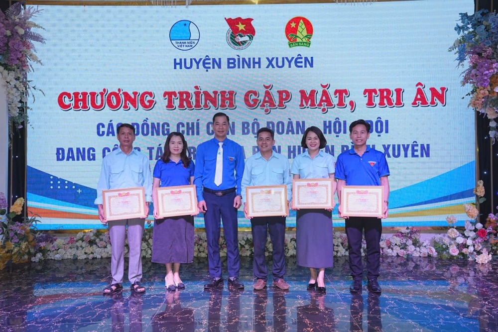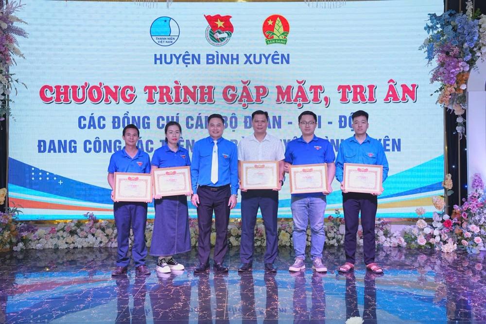 Cũng nhân dịp này, Ban Thường vụ Huyện Đoàn trao tặng giấy khen cho các tập thể, cá nhân đã đạt thành tích trong công tác Đoàn - Đội và phong trào thanh thiếu nhi năm học 2024 - 2025. Đồng thời, bằng tất cả tình cảm và sự trân trọng, trước khi kết thúc hoạt động của cấp huyện, Ban Thường vụ Huyện Đoàn – Hội LHTN Việt Nam – Hội Đồng đội huyện Bình Xuyên đã tặng quà lưu niệm tri ân các đồng chí cán bộ Đoàn – Hội – Đội đang công tác trên địa bàn huyện với mong muốn, mỗi cán bộ Đoàn – Hội – Đội sẽ nhớ mãi về những kỷ niệm thật đẹp mang tên “Huyện Bình Xuyên” và đó cũng là nguồn cảm hứng để mỗi đồng chí nguyên hay đương nhiệm cán bộ Đoàn – Hội – Đội sẽ nỗ lực, cố gắng hoàn thành xuất sắc mọi nhiệm vụ được giao để viết tiếp những trang sử mới, trong thời kỳ mới.