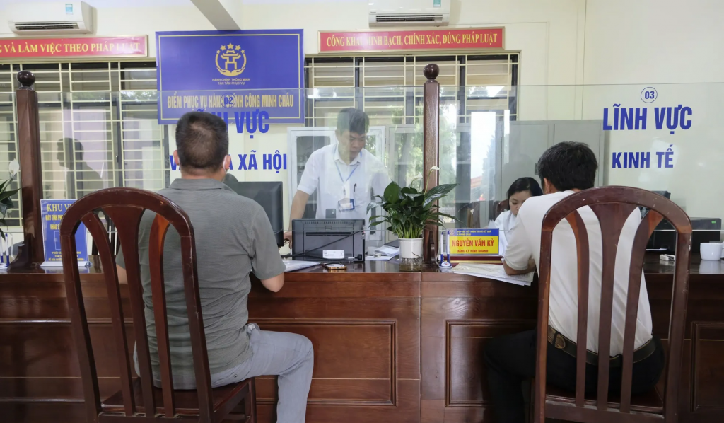 | Người dân tới làm thủ tục hành chính tại xã Minh Châu ngày đầu tuần mới (Ảnh: Châu Linh) |
