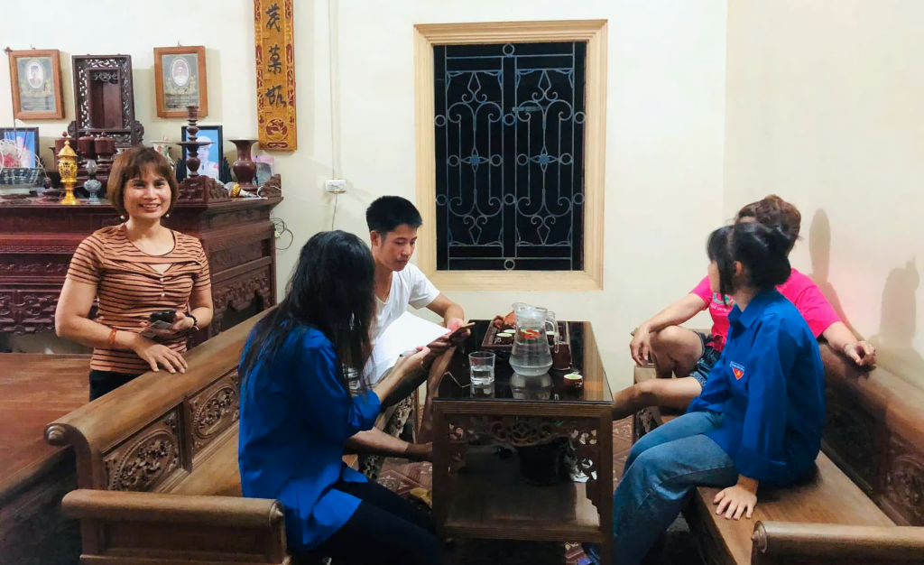 Ban ngày, Đoàn xã bố trí 2 nhóm tình nguyện viên trực tại trụ sở UBND xã. Buổi tối, Đoàn xã tăng cường các tổ thanh niên đi cùng cán bộ thôn tới từng hộ dân để vận động cài đặt các ứng dụng số và hướng dẫn thủ tục hành chính nếu có.