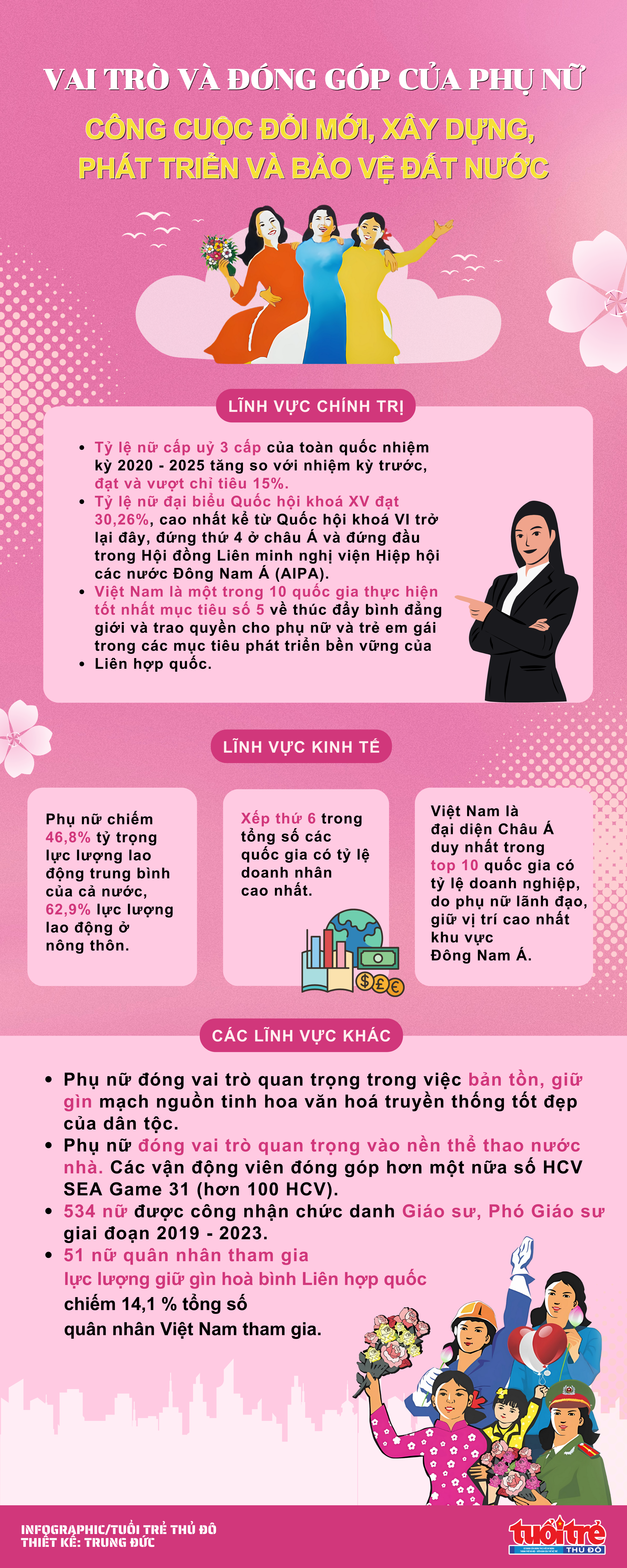 Trong những năm qua, được sự quan tâm của Đảng và Nhà nước, sự nỗ lực vươn lên bằng tài năng, trí tuệ và trách nhiệm, phụ nữ Việt Nam luôn khẳng định vai trò to lớn trên các lĩnh vực của đời sống xã hội và đóng góp xứng đáng vào công cuộc đổi mới, xây dựng, phát triển và bảo vệ Tổ quốc.