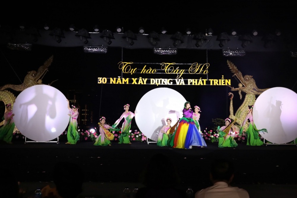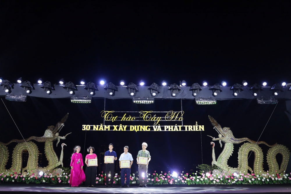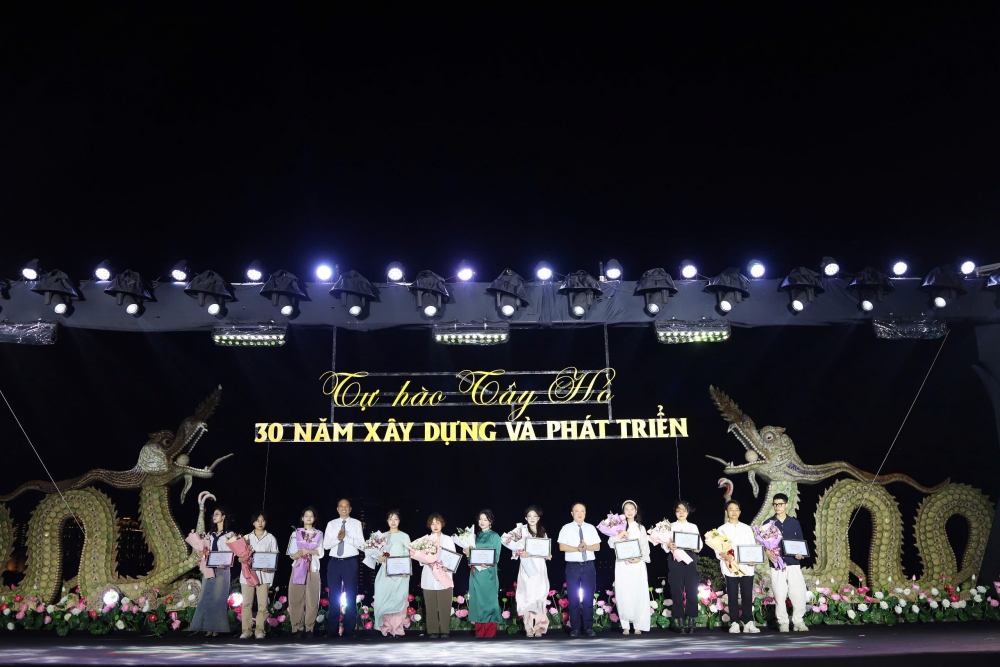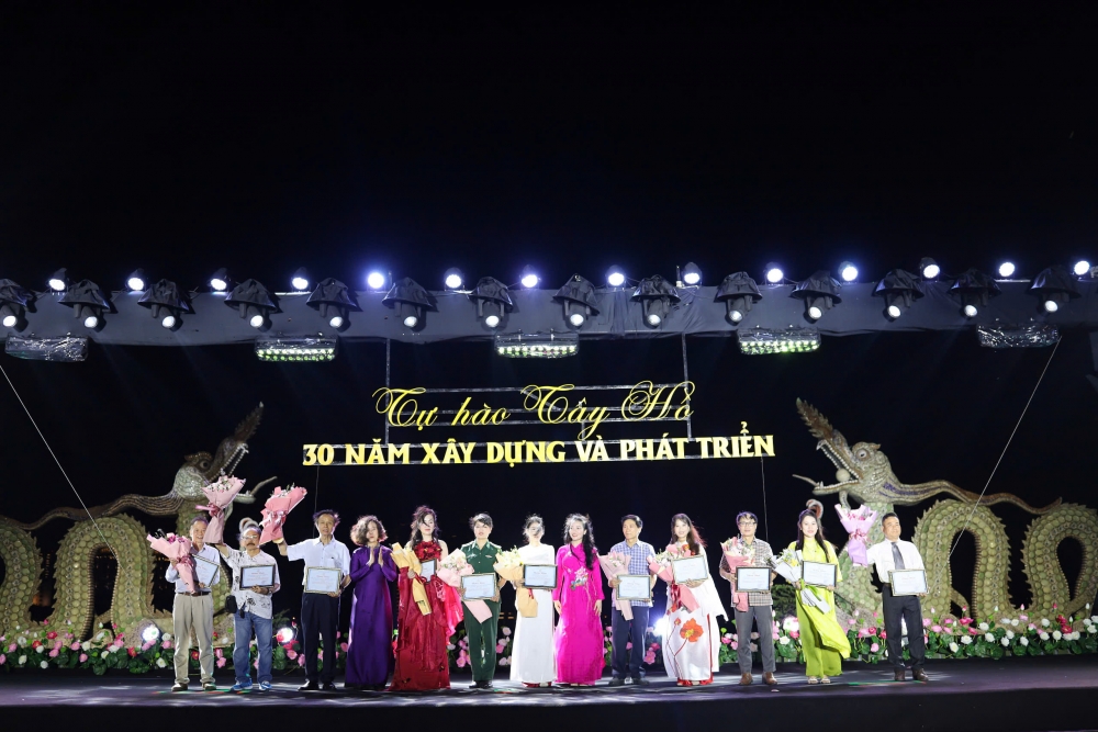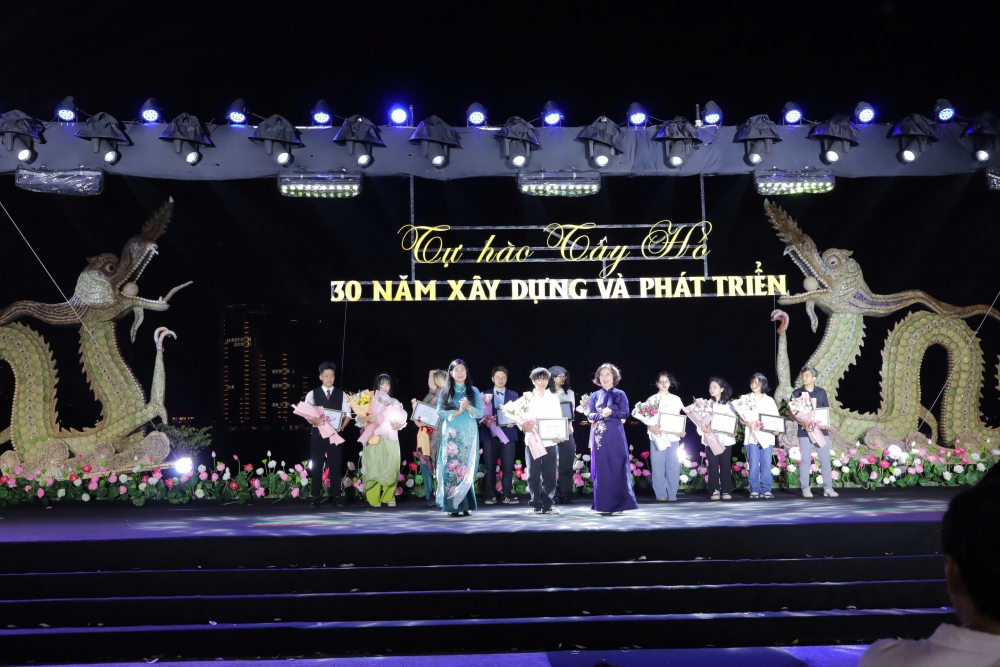Cũng tại buổi lễ, các đại biểu và đông đảo người dân quận Tây Hồ được thưởng thức các tác phẩm đoạt giải với những phần trình diễn, dàn dựng công phu, đầy tính nghệ thuật trên sân khấu độc đáo cạnh đôi rồng gốm cổ của Hồ Tây.