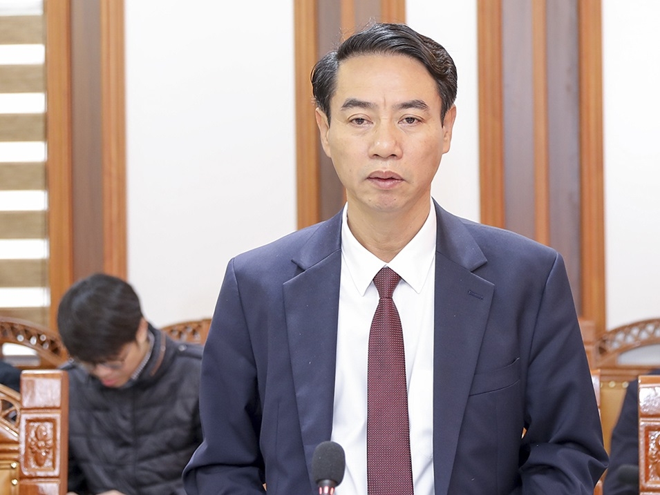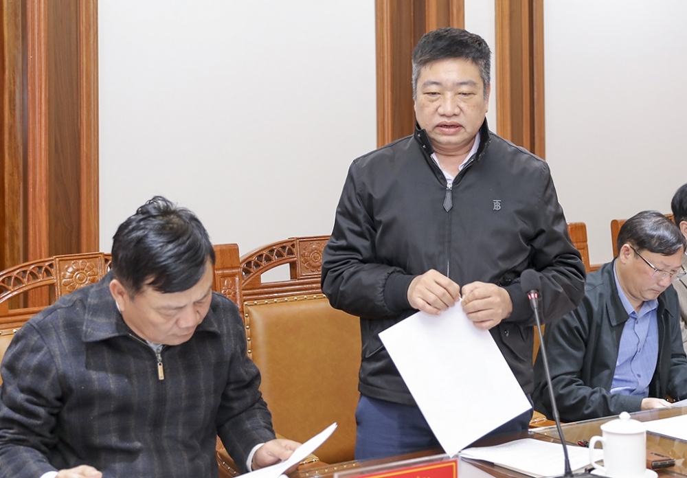 | Chủ tịch UBND huyện Lập Thạch Nguyễn Mạnh Tưởng phát biểu tại buổi làm việc |