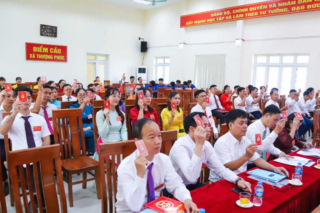| Các đại biểu thông qua phương hướng, nhiệm vụ của Đảng bộ các cơ quan Đảng xã Thượng Phúc nhiệm kỳ 2025-2030 |