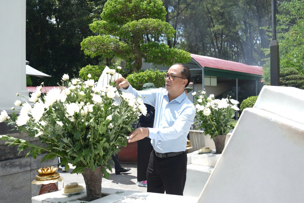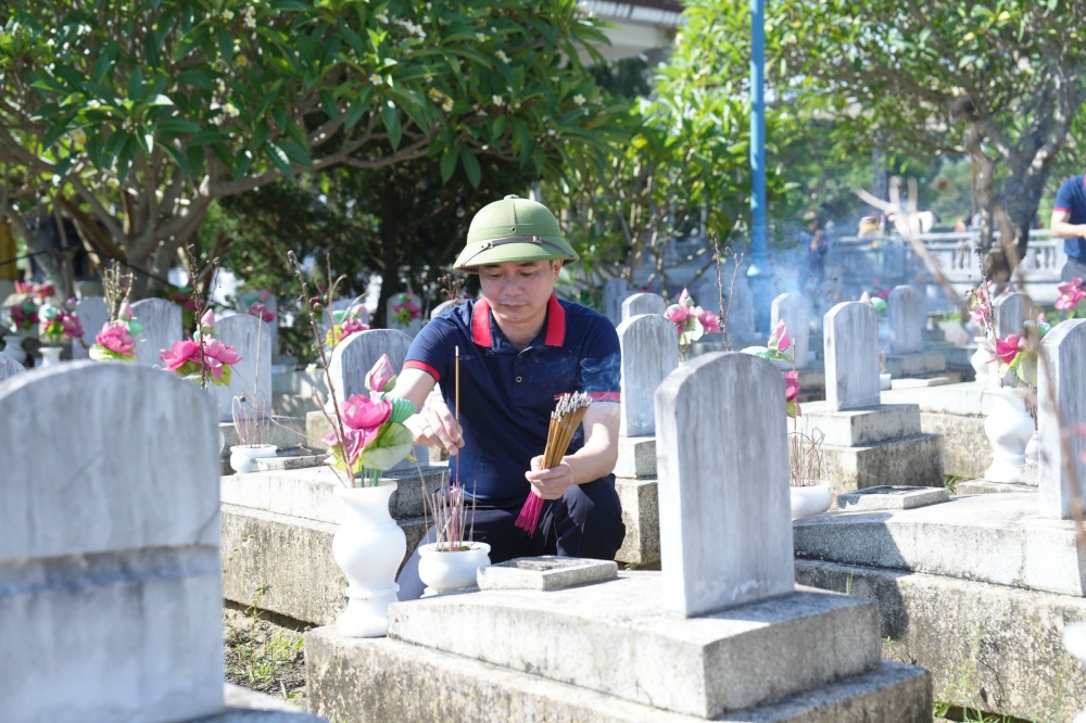 | Nhà báo Ngô Vương Tuấn, Phó Tổng Biên tập Báo Tuổi trẻ Thủ đô thắp hương tại các phần mộ liệt sỹ. |