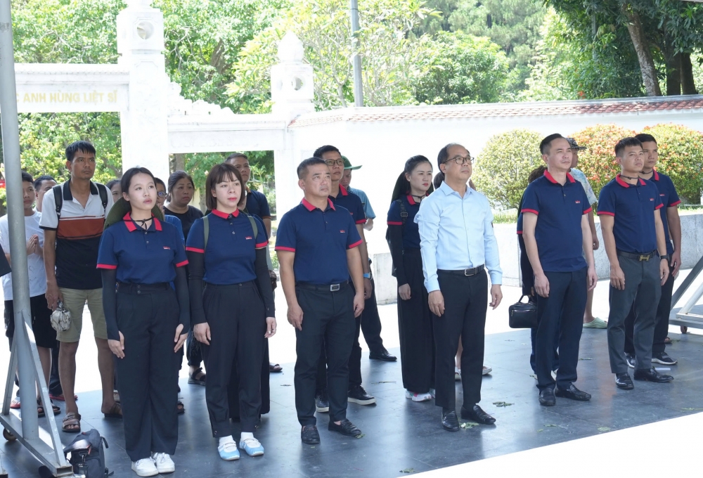 Trước anh linh các liệt sĩ, nhà báo Nguyễn Mạnh Hưng, Tổng Biên tập Báo Tuổi trẻ Thủ đô, cùng các thành viên trong đoàn bày tỏ lòng thành kính, biết ơn vô hạn trước sự hy sinh anh dũng của các liệt sỹ đã cống hiến cả tuổi xuân cho quê hương, đất nước.