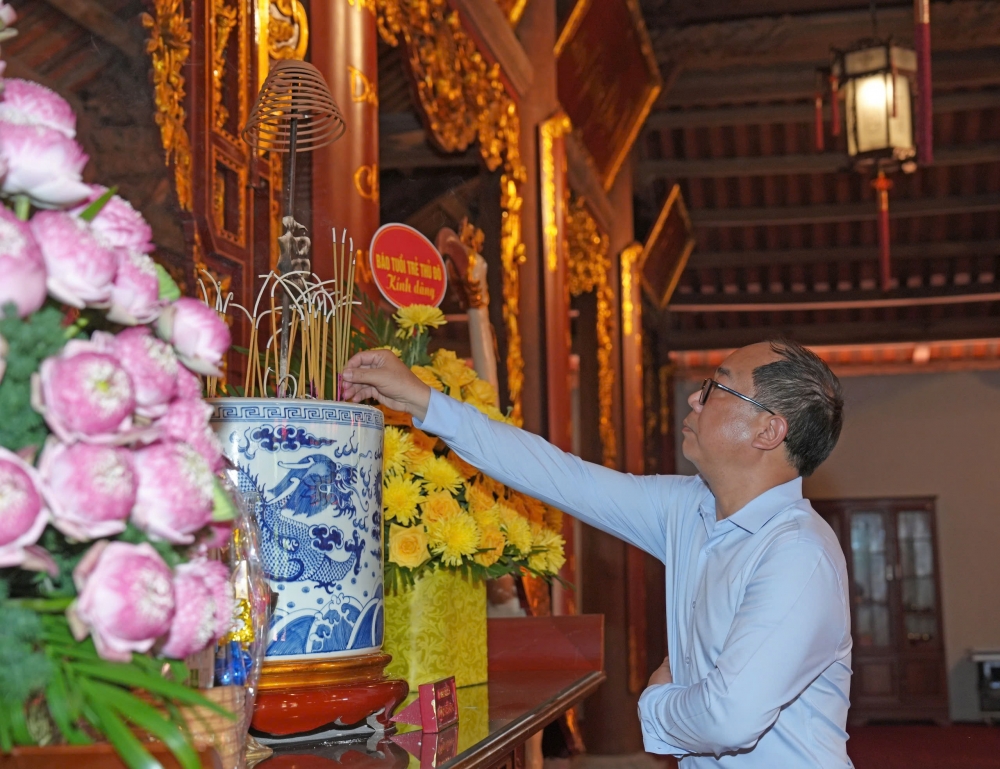 | Nhà báo Nguyễn Mạnh Hưng, Tổng Biên tập Báo Tuổi trẻ Thủ đô dâng hương tại Nhà tưởng niệm. |