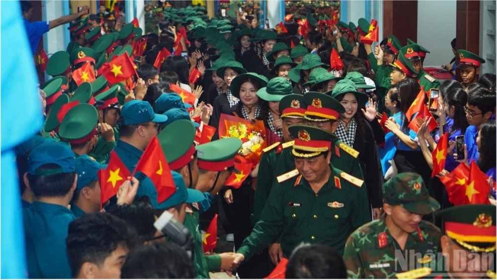 | Bộ Tư lệnh Quân khu 7 tổ chức lễ tiễn đoàn cán bộ, chiến sĩ lên đường ra Hà Nội tham gia nhiệm vụ diễu binh, diễu hành A80 tại ga Sài Gòn (Ảnh: Báo Nhân Dân) |